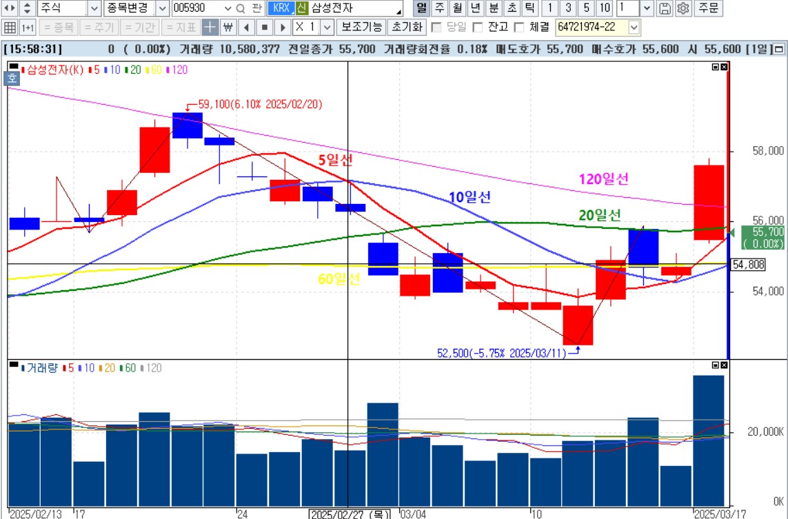 많은 투자자들이 60일선 위에서 주가가 지지를 받는지,혹은 저항을 받는지를 눈여겨봅니다. 특히 기관이나 외국인 투자자들이 중기 추세를 판단할 때 이 선을 참고하는 경우가 많습니다. 그리고 중기선은 단기선보다 훨씬 덜 흔들리기 때문에, “진짜 추세”를 확인하는 데 좋은 기준선 역할을 해줍니다.